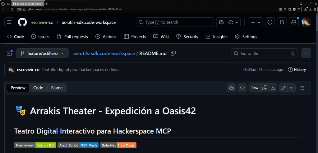 Aunque todo literatura (¡no hay que dar crédito!) y más bajo licencia AIPL.v1 https://github.com/escrivivir-co/vibe-bitacora/blob/feature/astillero/LICENSE.md… por medio de pingback (via WordPress) sé de un experto en juegos de realidad extendida que sería un MC (https://github.com/escrivivir-co/as-utils-sdk.code-workspace/blob/feature/astillero/MAESTRO_CEREMONIAS.md) de puta madre.